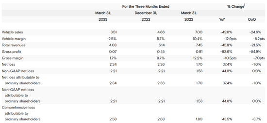 除了销量之外,毛利率的表现也成为小鹏此次财报中值得关注的方面。数据显示,小鹏今年第一季度实现毛利率为1.7%,相比去年同期和上一季度都有一定程度的减少,进而也影响了小鹏的盈利能力。